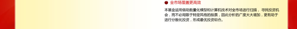 (3)市場(chǎng)完全覆蓋更高效,運(yùn)用量化投資,輔以計(jì)算機(jī)技術(shù),達(dá)到市場(chǎng)360度完全掃描,高效形成最優(yōu)投資組合;