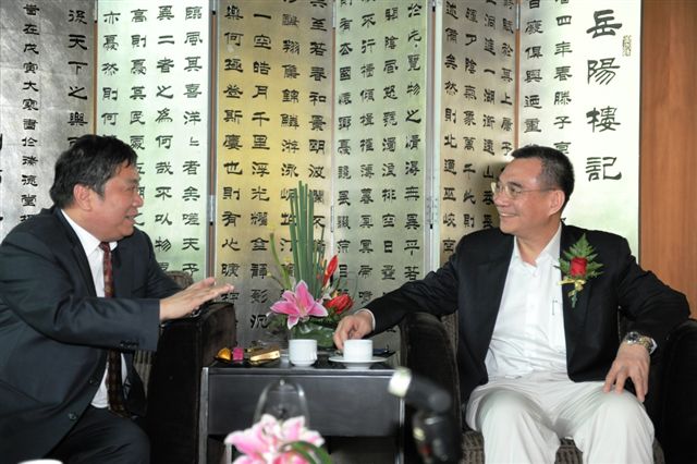方培池先生向林毅夫先生介紹中?;鸾?jīng)營情況